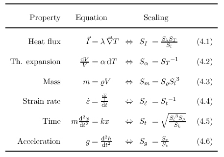 can be obtained, where the scaling factors SX of a property X represent the ratio of laboratory values to natural values. Equation 2.2 couples the length and time scales to the material-dependent scale of thermal diffusivity. The length and time