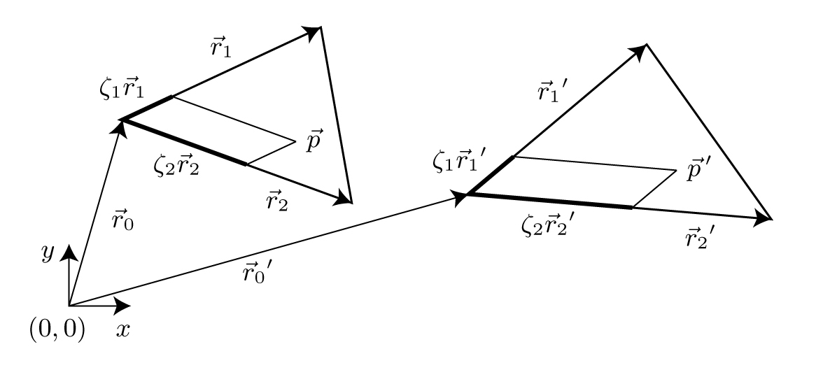 Thus, movement of the whole triangle does not contribute to the internal deformation. For a triangle defined