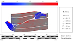 Although the deformation along the thrust was dextral, the internal deformation in the two blocks of the lower crust adjacent to the thrust appears to be sinistral (e. g. [t2.rot.mov]). This was an effect of the rotation of the whole block, which was caused by steepening of the thrust. Weak sinistral deformation in the right hand side of the upper mantle was a consequence of material flux underneath the right-hand piston out of the model domain (e. g. [w1.rot.mov]). It can be observed that the sinistral rotation in the hanging wall block of the lower crust was stronger in the experiments incorporating a weak wedge instead of a simple thrust (compare e. g. Figures [t1.rot.mov] and [w1.rot.mov]). This effect dominated in the fast experiments, and was weaker in the slow runs. In the wedge, both dextral and sinistral shear were present.