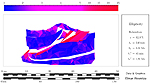 If large dilatations occurred in two adjacent triangles with opposite signs, this was probably an artefact of digitizing: If a marker position is digitized incorrectly, the areas of adjacent triangles change. Large dilatations were measured in the brittle part of the model, where the contrast of differently-coloured materials was used as markers. This contrast decreased during deformation, inhibiting accurate digitizing. The large negative dilatations (-1<Δ<0, blueish colours) occurred at the base of the upper mantle (e. g. Figures [w1.dil.mov] or [t1.dil.mov]) or in the lower left part of the hanging wall block of the lower crust (all experiments). These were areas where partial melting could be observed. The analogue model presented here was not designed to incorporate partial melting. The effects showing dilatation (regardless whether due to movement of melt or due to digitisation errors) pose limitations for the data analysis. Nevertheless, neither the differential stresses nor the direction of the principal strain axes are influenced by the isotropic part of the stress (or, indeed the strain) tensor. The size of the strain ellipses as well as the ellipticity are altered by an isotropic part of the strain tensor and have to be used with care in the respective areas. In experiments with a wedge, the wedge always contained triangles with rather large dilatations, probably resulting from movement of the material in the line of view (see e. g. [w1.dil.mov]).